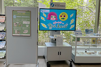 本取組の一環として、夏季の省エネルギーをテーマにしたパネル等の展示を行っております。冷房中の室温の適正化や照明の削減など、御家庭での省エネルギーや節電への取り組み方なども紹介しておりますので、是非お越しください。