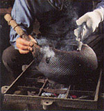 錆び防止のために、木炭炉の中で製品を焼きます。